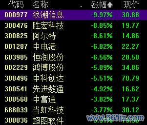 英伟达概念股开盘后持续下探,截至午盘,浪潮信息跌停,、胜宏科技跌超8%,中科创达、恒润股份、中电港、鸿博股份等纷纷下挫。