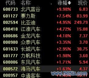 截至午盘,涨停,赛力斯涨超7%,比亚迪涨超4%,长城汽车、众泰汽车、江淮汽车等纷纷拉升。